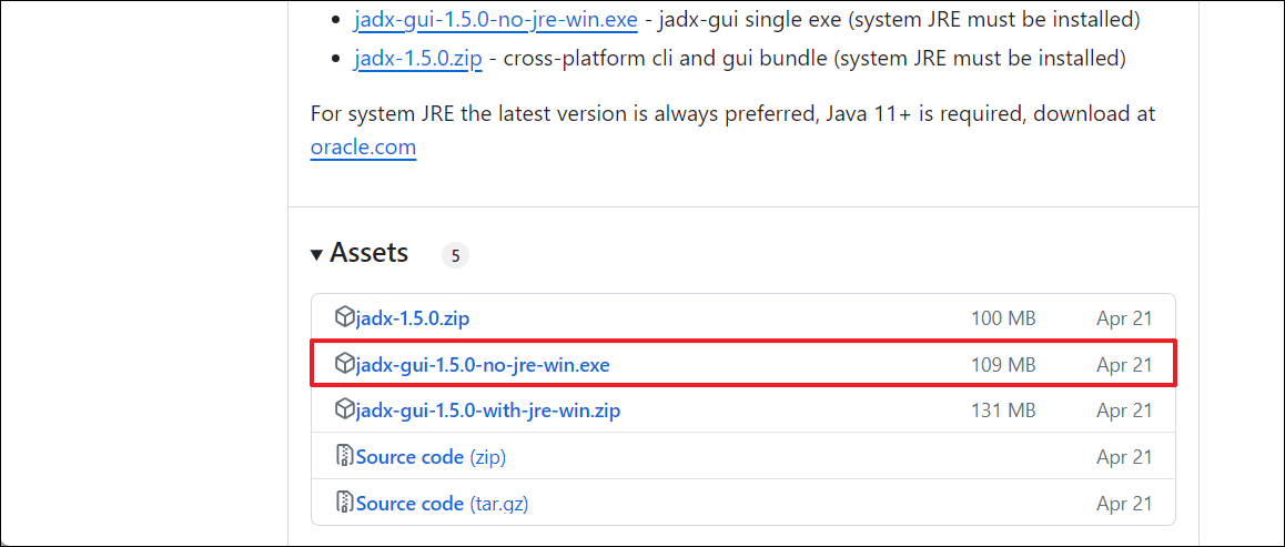 java 설치 후 jadx-gui가 정상적으로 실행될 것이다.