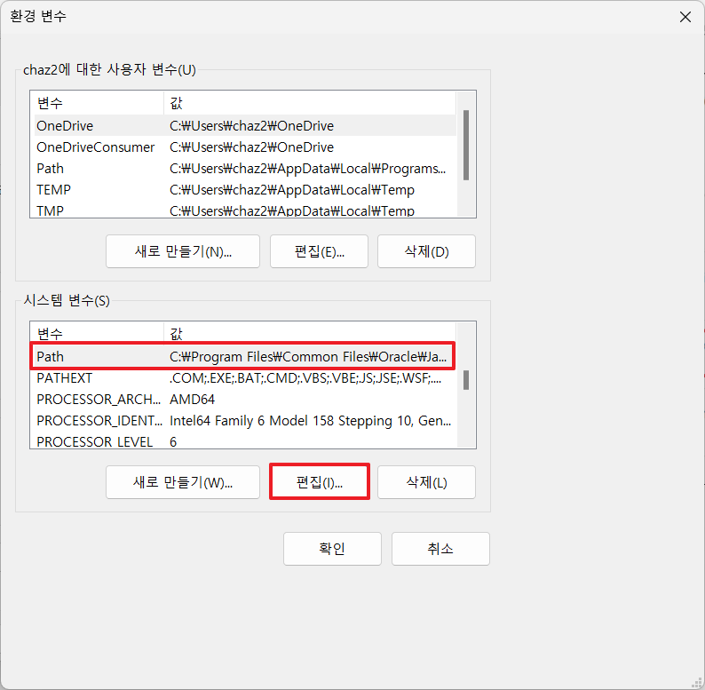 4. java 실행 파일이 위치해 있는 %JAVA_HOME%₩bin 경로를 상단에 추가해준다.