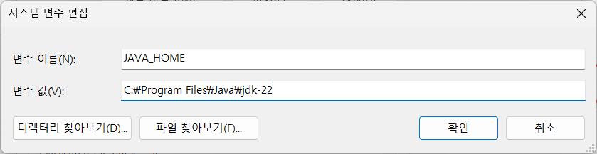 2. 변수 이름 JAVA_HOME에 jdk 설치 경로를 설정해준다.