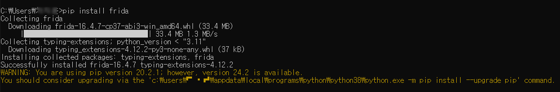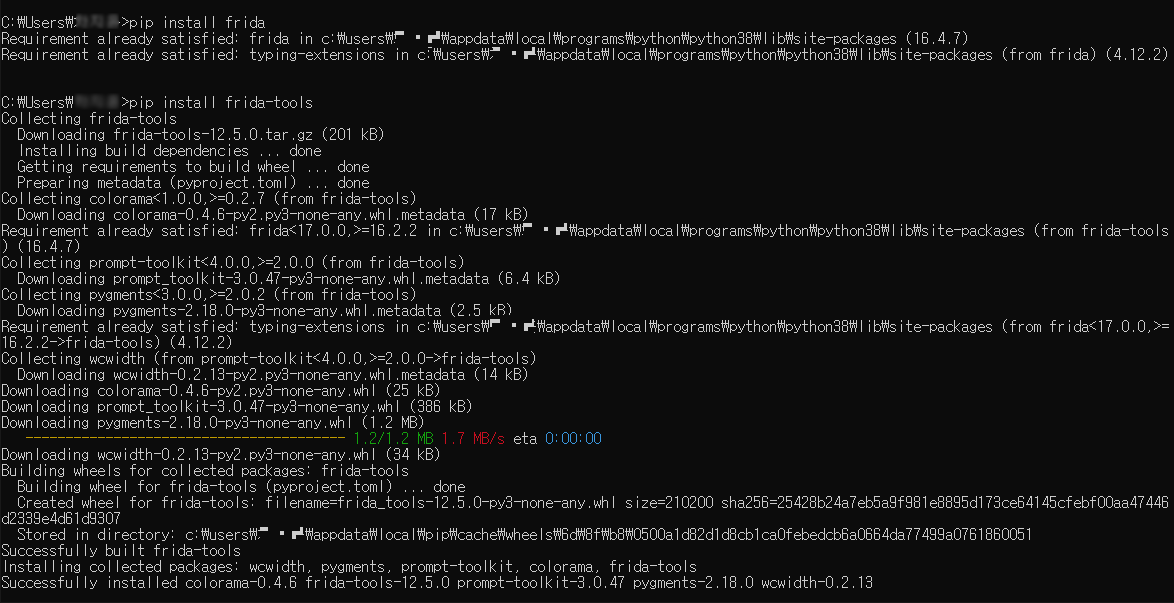 2-3. frida 마저 설치하기 pip install frida-tools