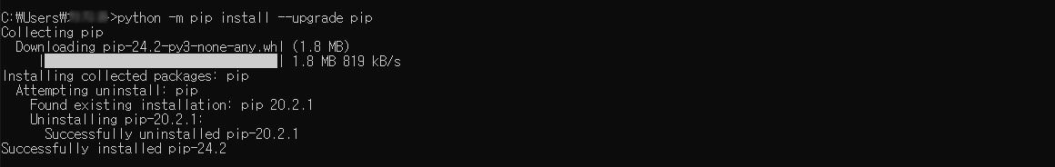 2-2. pip 업그레이드 python -m pip install --upgrade pip
